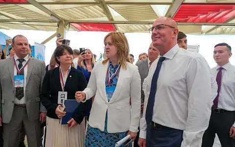 В день 100-летия «Артека», стенд «Я-строитель будущего!» посетили заместитель Председателя Правительства Российской Федерации Дмитрий Чернышенко и Министр просвещения Российской Федерации Сергей Кравцов. Руководитель проекта «Я-строитель будущего!», ответственный секретарь Общественного совета при Минстрое России Светлана Кузьменко рассказала о профориентационном проекте Общественного совета, познакомила с представителями Детского и Юношеского общественных советов.